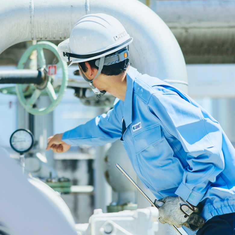 石油製品は、私たちの生活や工場などで幅広く使われています。油槽所は、製油所から運ばれてきた石油製品を一時的に保管し、お客様に安全に届けるための大切な場所です。決められた品質を保ち、不純物が混ざらないようにしっかりと管理し、安全で安定した石油製品を供給するため、日々点検と品質確保に努めています。
