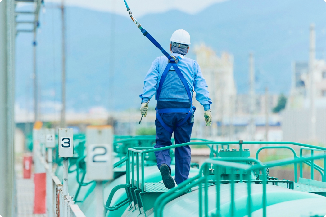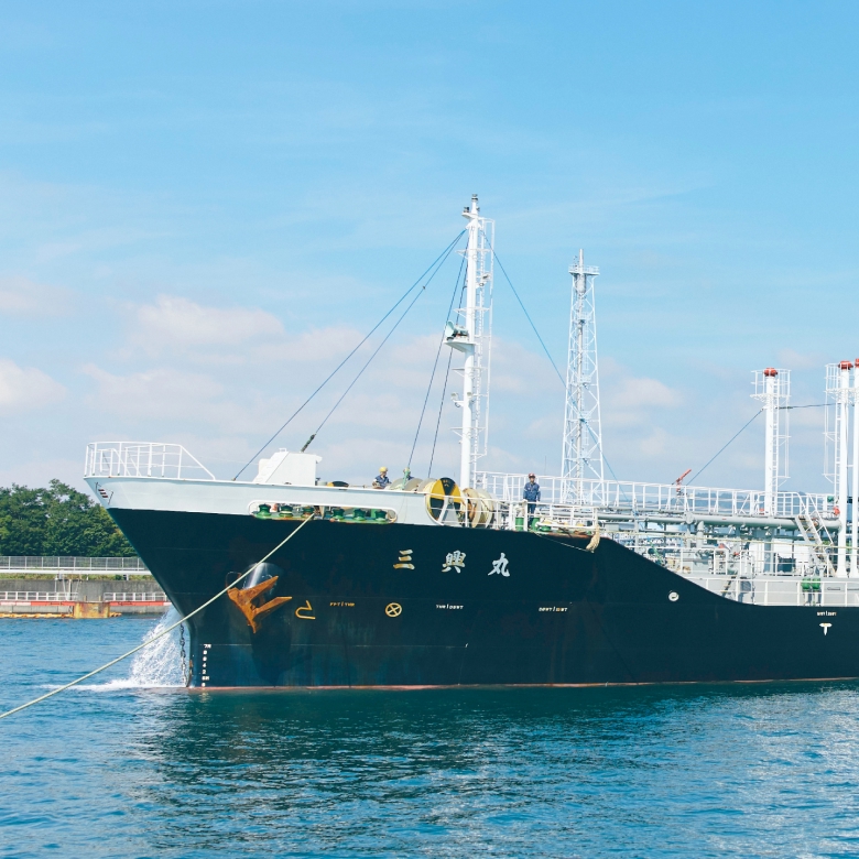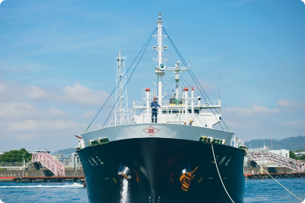 製油所で精製された石油製品は、タンカー船によって運ばれ、油槽所のタンクに保管されます。大きな船では一度に約5,000キロリットルの製品を運び、効率的な供給を担っています。地域によっては海外から直接運ばれることもあり、当社は中継拠点として、地域に安定した供給を行う重要な役割を果たしています。